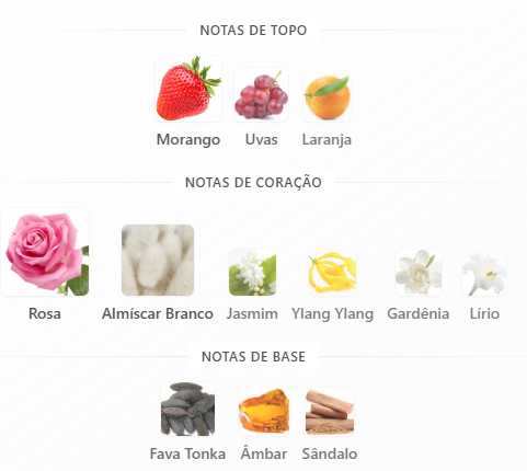 Rosa, Almíscar Branco, Jasmim, Ylang Ylang, Gardênia, Lírio