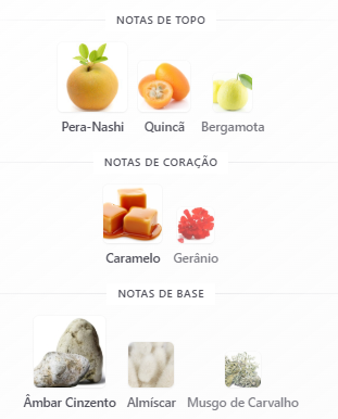 • Projeção: 2 a 3 horas moderada/alta - perfume que faz a pessoa ser notada com uma aura perfumada elegante