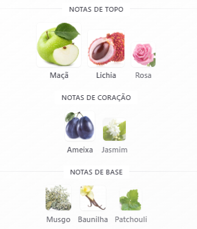 Notas de Topo: Maçã, Lichia, Rosa