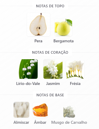 Porém, ele segue um caminho olfativo semelhante a fragrâncias frutadas florais limpas e sofisticadas de marcas designer.